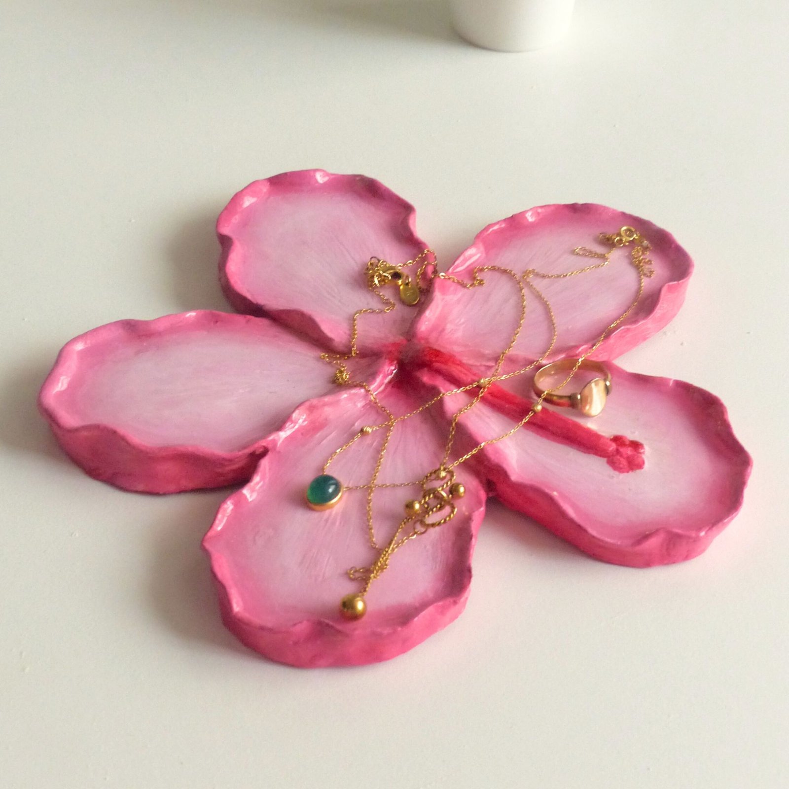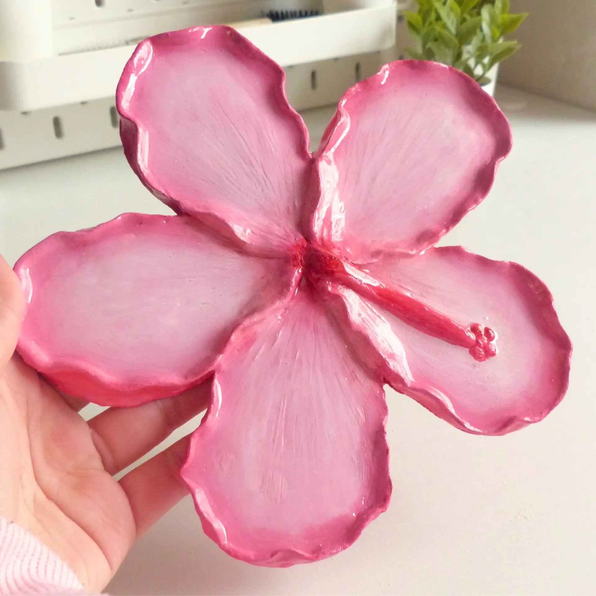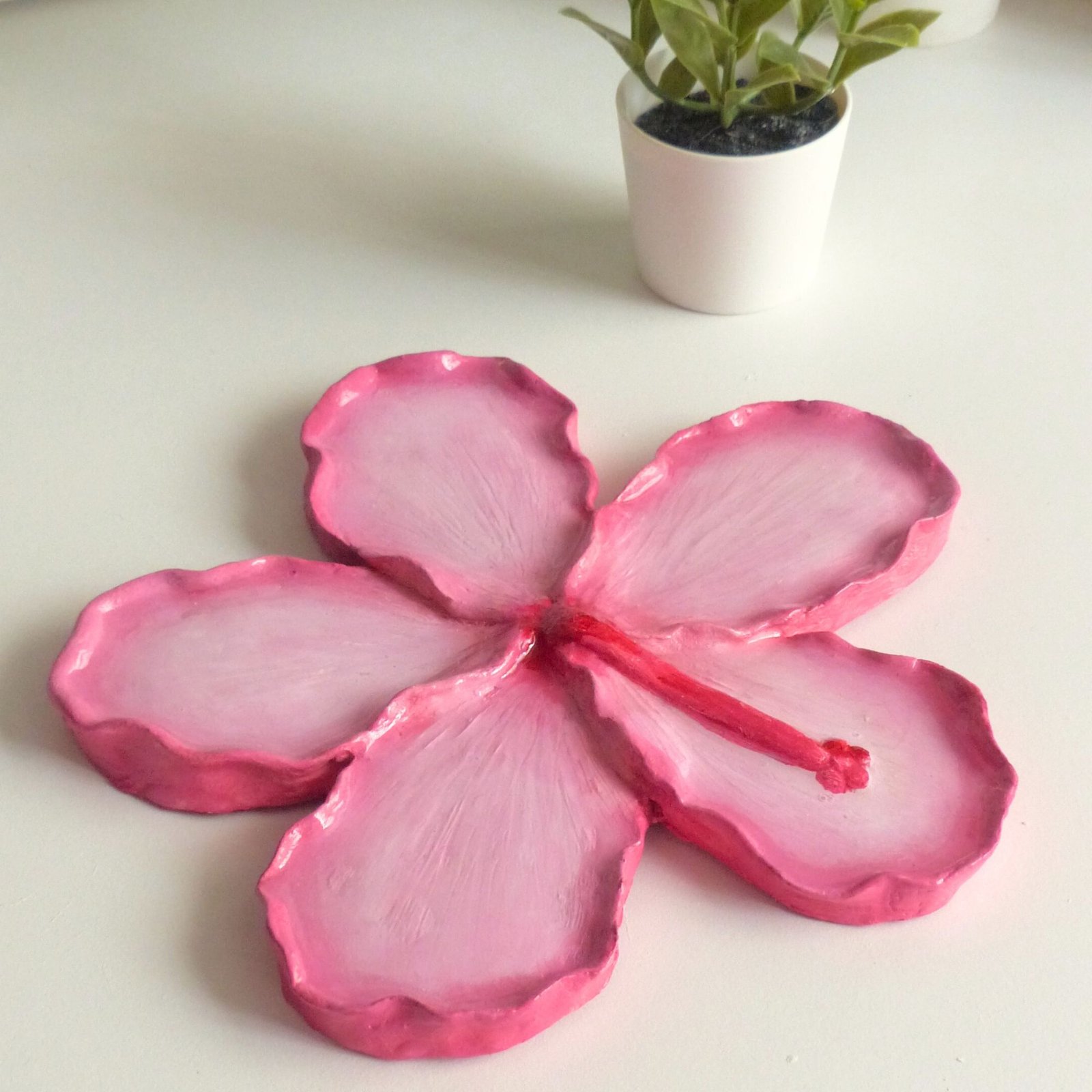 Although designed as a jewelry organizer, this pink hibiscus flower tray is incredibly versatile. You can use it to hold keys, hair accessories, crystals, coins, or other small everyday essentials. It also works beautifully as decorative home décor, adding a handmade and artistic feel to any room.